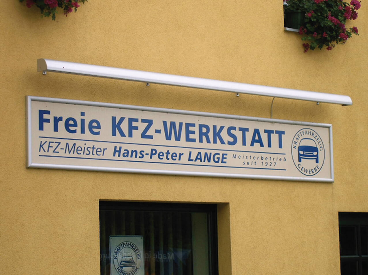 Diese langlebige Lösung ist besonders für hochwertige Objekt- und Sammelschildanlagen für Industrie, Restaurant, Gaststätte, Verein, Friseurgeschäft, Handel, Firma, Geschäft, Hotel gefertigt.