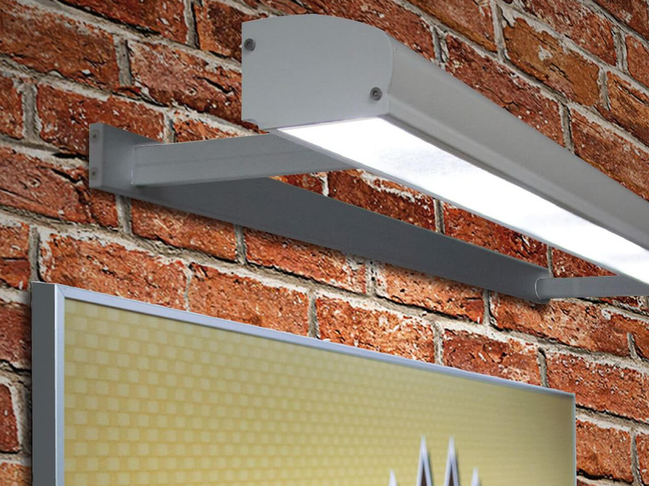 Schilder, Wandtafel, die an einer Wand befestigt werden sollen, haben wir verschiedene Rahmensysteme. Alle können mit einer darüber liegenden Beleuchtung komplettiert werden.