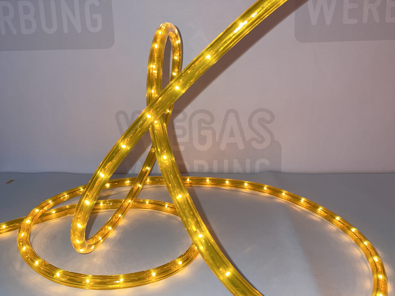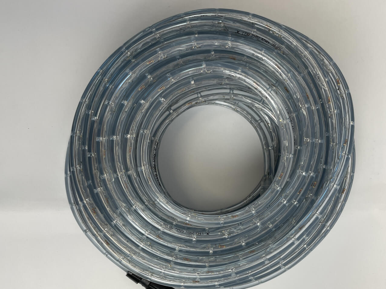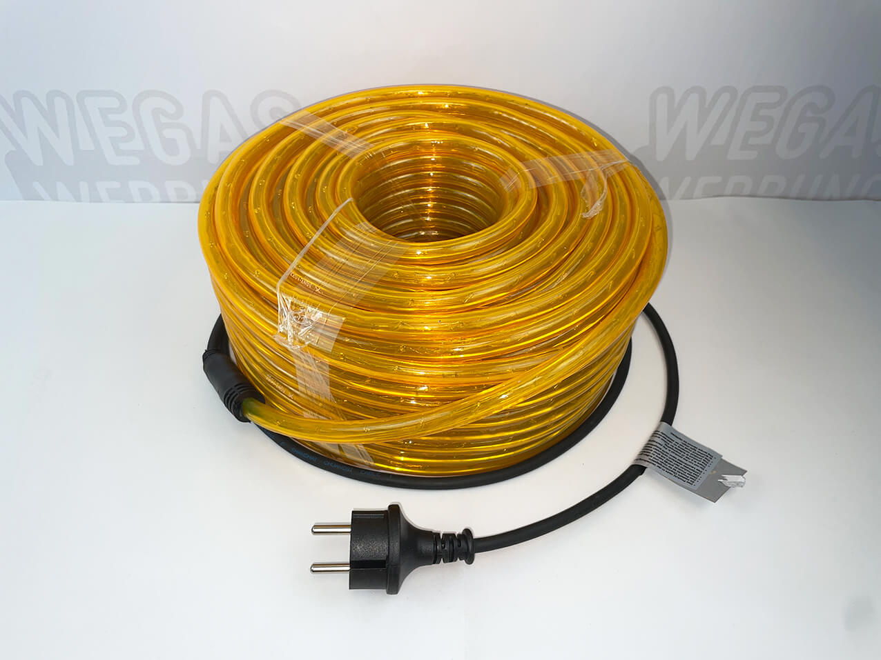 Unsere Lichtschläuche sind aus einem extrem flexiblen Lichtschlauch hergestellt. Das Partylicht ist besonders für den Außenbereich und für Innen geeignet. Die LED Lampen sind in einem Vollkunststoff-Rundmaterial eingegossen. Damit haben die Lichtschläuche eine sehr lange Lebensdauer. Die Gummilichter gibt es in vielen verschiedenen Farben, wie blau, rot, klar, gelb, grün, lila, orange, weiß und in vielen verschiedenen Längen wie 5 m, 10 m, 20 m, 30 m oder 44 m. Den Lichtschlauch gibt es auch als RGB Wechsellicht mit multicolor Farben. Der LED Gummischlauch kann aller 36 Lampen in 1 m Abstand geschnitten werden. Sie sind über plug and play ansteuerbar. Durch die IP 44 Schutzart, Schutzklasse SK 2 ist der LED Lichtschlauch auch für Außen geeignet. Der Schlauchdurchmesser hat einen Durchmesser von Ø 1,3 cm. Der wasserfeste LED Schlauch ist somit im Pool, Teich, im Baderaum, im Regen durch eine wasserdichte Silikonabdichtung einsetzbar. Achtung, die Lichterketten sind nicht für den Haushalt zur Raumbeleuchtung gedacht. Mit unseren robusten und flexiblen Lichterschlauch können sie effektvoll ihren Garten, Partyräume, Außenbereiche oder Innenräume schmücken. Schaufenster erhalten mit dem LED Lichtschlauch eine besondere Aufmerksamkeit. Aber auch als Leuchtreklame wird der leuchtende Gummischlauch in der Werbung für Schriften, Formen, Logos werbewirksam verwendet.
